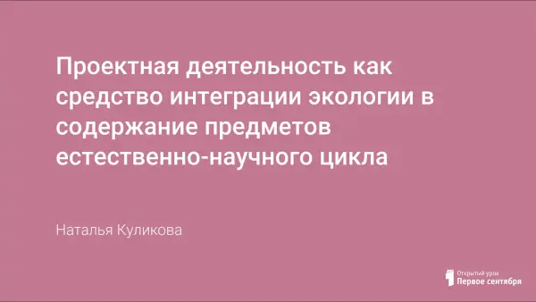 В статье рассматривается информационная технология (метод проектов) как эффективная форма получения экологических знаний, а также как средство интеграции экологии в содержание предметов естественнонаучного цикла. Различная типология проектов предполагает разные формы интеграции предметов естественного цикла с экологией.
