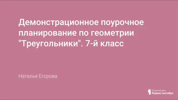 Электронно-образовательный ресурс представляет собой поурочное планирование по разделу геометрии "Треугольники" для 7-го класса в виде мультимедийных презентаций. Конспект первого урока данного раздела приведен полностью. Возможности развития проекта: в любое время можно дополнить проект новыми заданиями, идеями.