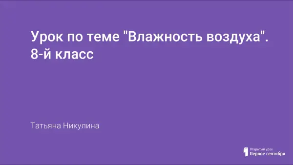 Урок в 8-м классе направлен на знакомство учащихся с понятиями абсолютной и относительной влажности воздуха, устройством и принципом действия психрометра – прибора для измерения относительной влажности воздуха; формирование понимание роли влажности воздуха для человека, растительного мира, различных отраслей народного хозяйства.