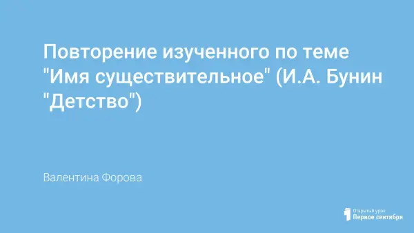 Конспект интегрированного урока по русскому языку, литературе, информатике. Цель урока: проверить усвоение изученного материала по теме «Имя существительное», провести анализ поэтического текста на примере стихотворения И.А. Бунина «Детство».