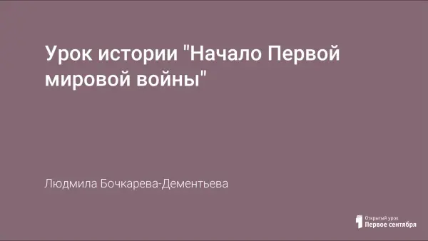 В ходе урока учащиеся получают знания о причинах Первой Мировой войны. У школьников формируются представления о готовности стран к войне, военных союзах, а также неотвратимости начала военных действий.