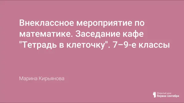 Одной из традиционных форм внеклассной работы в нашей школе уже несколько лет является заседание кафе «Тетрадь в клеточку». В статье представлен сценарий одного из заседаний для обучающихся 7–9-х классов. Такая форма работы оказывает большое эмоциональное воздействие на участников и зрителей, способствует воспитанию находчивости и любознательности, активизирует мыслительную деятельность, формирует творческие способности обучающихся.