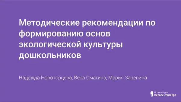 Методические рекомендации по формированию основ экологической культуры дошкольников