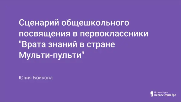 Сценарий общешкольного посвящения в первоклассники это искусное переплетение образов и поведения любимых сказочных персонажей и обряда посвящения. Участие самих детей в развитие сюжета, интерактивные составляющие программы вызывают интерес и творческую активность, как и у участников коллектива, которые играют роли на сцене, так и у первоклассников.