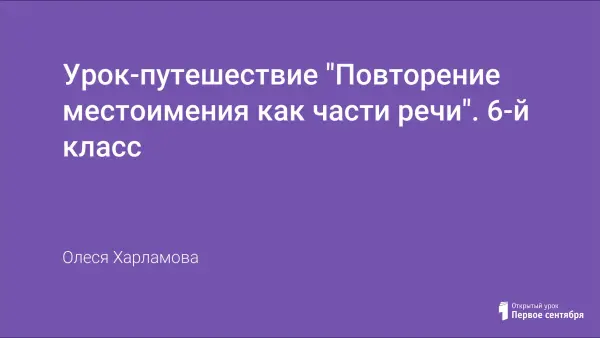 Урок даёт возможность с помощью игровых моментов повторить основные сведения о местоимении. С целью повторения, проверки, закрепления знаний и умений учащихся проводятся следующие виды работы: устный опрос, работа с карточками, повторение правописания некоторых местоимений, а также выполнение творческих заданий.