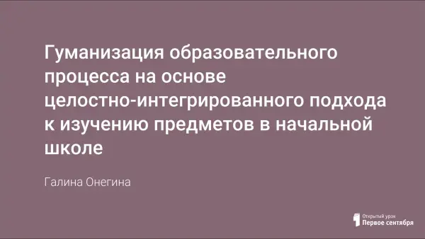 Содержание статьи раскрывает актуальность гуманизации образовательного процесса младших школьников на основе целостно-интегрированного подхода к изучению предметов в начальной школе согласно ФГОС начального общего образования второго поколения.