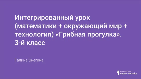 Данный интегрированный урок объединяет программный материал учебных предметов начальной школы: окружающего мира, математики и технологии. Урок ставит своей целью систематизировать знания младших школьников о царстве грибов, изучить новый геометрический объект – окружность, активизировать творческие способности детей.