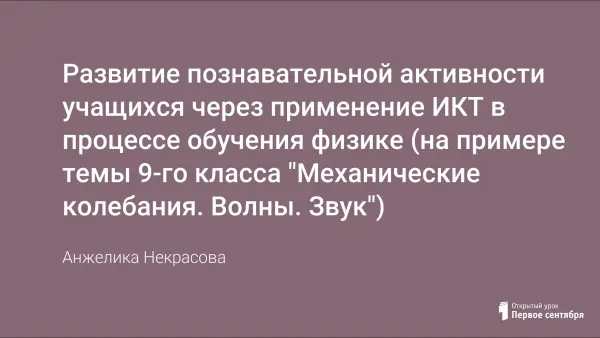 Работа содержит статью с обоснованием актуальности оптимизации образовательного процесса, развитие познавательной активности школьников через создание и применение на уроках ИКТ на примере изучения темы "Механические колебания. Волны. Звук".