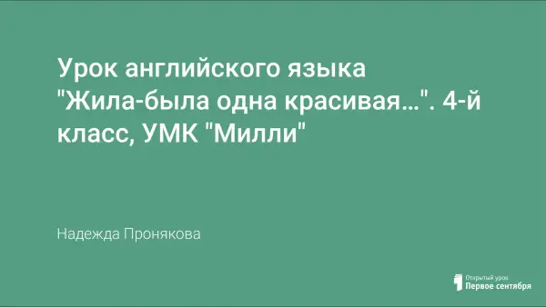 На примере урока по теме «Жила-была прекрасная…», проведенного в 4-м классе по учебнику английского языка Милли, можно проследить преимущества показа презентации. В ходе урока учитывался принцип учета возрастных особенностей детей младшего школьного возраста, применялись различные формы работы.