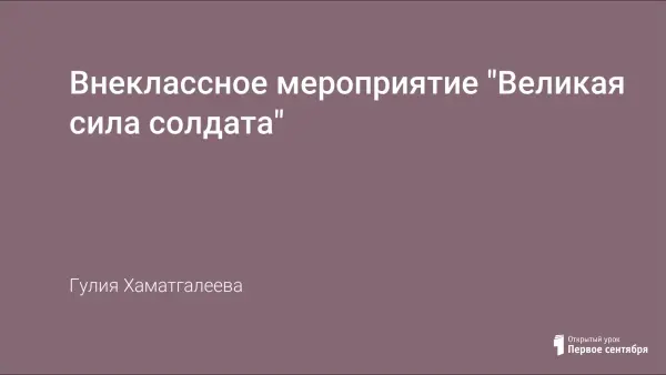 Внеклассное мероприятие посвящено победе русского солдата и тому, что его согревало и напоминало о доме в холодные дни – горячей пище. Студенты узнают о своих земляках, родственниках, геройски погибших во время войны, быте и пище солдат. Заключительные слова от имени ведущих обращены к взрослым с призывом помнить уроки войны. В конце мероприятия дегустируются блюда полевой кухни.