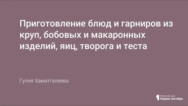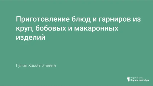 Цель урока: изучить приготовление и отпуск блюд и гарниров из круп, бобовых и макаронных изделий; развивать социально-коммуникативные качества учащихся, самостоятельную деятельность; привить учащимся правильную культуру поведения на уроке, интерес к будущей профессии.