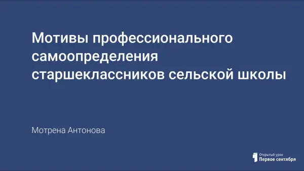 В статье рассматривается одна из важных задач в решении проблемы формирования профессиональной направленности – изучение профессиональных интересов учащихся сельской школы. Цель исследования - выявление преобладающего вида мотивации и определение основных факторов, влияющих на мотивы профессионального самоопределения старшеклассников сельской школы.