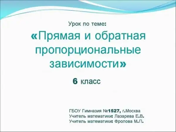 Урок-презентация по теме "Прямая и обратная пропорциональные зависимости". 6-й класс