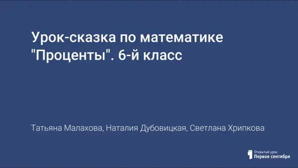 Данный урок обобщает и систематизирует знания по теме "Проценты". Форма проведения - сказка, которая способствует активизации познавательного интереса к изучению математики, а использование презентации позволяет увеличить и разнообразить информацию по изучаемой теме.