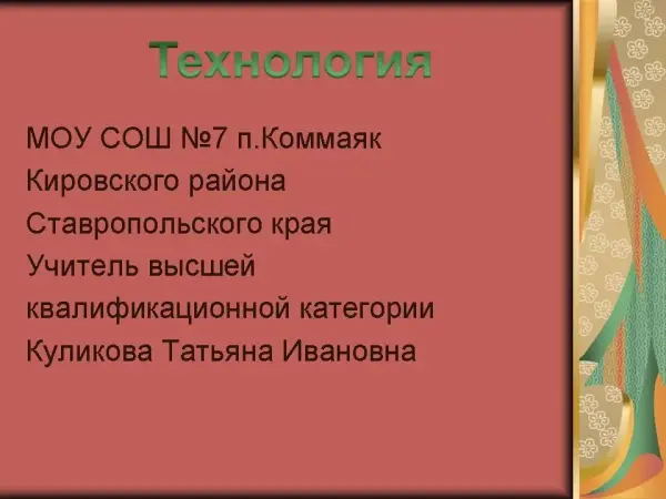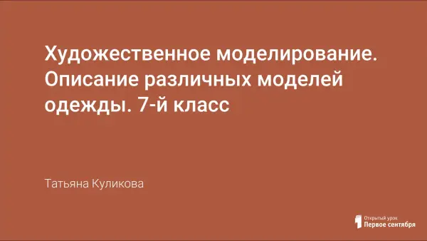 Данная разработка предлагается учителям, которые заинтересованы интересно, познавательно и доступно изложить новый материал по теме "Моделирование" в 7-м классе. На уроке школьницы знакомятся с профессией художника-модельера и по образцам моделей учатся работать c терминологией. В презентации использовано автоматическое воспроизведение всех этапов изготовления швейного изделия средствами мультимедиа.
