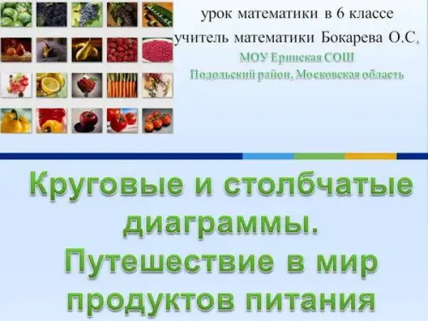 Урок математики предназначен для учащихся 6-го класса. Цель урока: обучение навыкам построения, чтения и работы с круговыми и столбчатыми диаграммами.