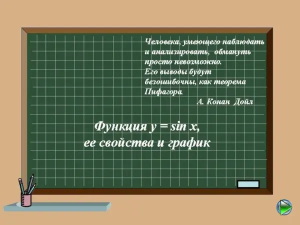 В статье представлена разработка урока с мультимедийным сопровождением. Цели урока: обеспечить усвоение учащимися алгоритма построения графиков тригонометрических функций; обобщить и систематизировать знания о свойствах функций; формировать вычислительные навыки.