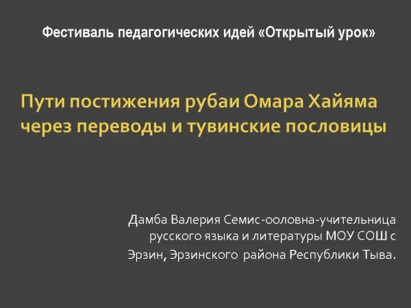 Пути постижения рубаи Омара Хайяма через переводы и тувинские пословицы