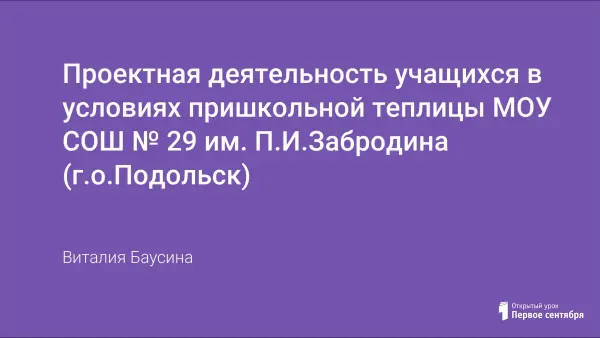 В современных реалиях идет цифровизация всех видов деятельности человека, в том числе и сельского хозяйства. Подготовку кадров начинают со школьной скамьи. В МОУ СОШ № 29 (г.о.Подольск) созданы условия для проектной деятельности: есть своя пришкольная теплица, а также биоцентр, расположенный в Тульской области, где обучающиеся выполняют проектные и научно исследовательские работы. Один из таких проектов «Создание прототипа настольной мини-теплицы с технической документацией для выращивания растений методом аэропоники» предлагаю в данной статье.