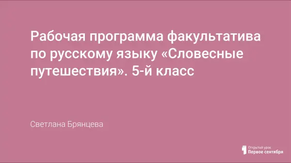 Факультатив "Словесные путешествия" предназначен для углубленного изучения русского языка через увлекательные и познавательные занятия. Программа направлена на развитие у высокомотивированных учащихся интереса к языковым играм, расширение словарного запаса и улучшение навыков работы с текстом. В процессе занятий школьники будут участвовать в различных "путешествиях" по миру слов, изучая особенности языка и развивая творческое мышление. Занятия включают чтение, анализ, написание и обсуждение текстов, а также участие в игровых и практических заданиях. Цель: развить у учащихся интерес к изучению русского языка через изучение и использование различных языковых структур, расширение словарного запаса и развитие творческих способностей через участие в текстовых и языковых играх.