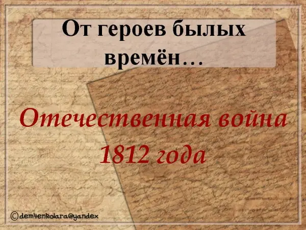 Внеклассное занятие по теме проводится с обучающимися начальной школы и направлено на формирование представления о героическом прошлом нашей Родины через осмысление событий Отечественной войны 1812 года.