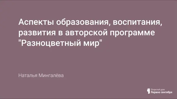 Целью моделирования воспитательного процесса, а иначе программы «Разноцветный мир», стало формирование гармонично развитой личности (идеальная цель). При постановке результативной цели я опираюсь на итоги индивидуальной и коллективной аналитической деятельности. Приоритетом программы является воспитание нравственных ценностей как ядра личности.
