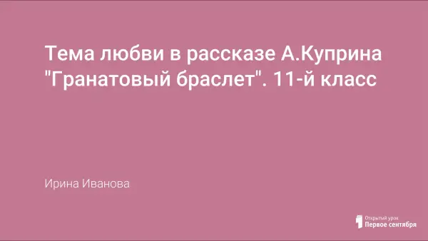 Цель данного урока – исследование мастерства А.Куприна в изображении мира человеческих чувств посредством аналитической работы с текстом в единстве формы и содержания; раскрытие авторской позиции в определении понятия «настоящая любовь»; создание условий для выражения учениками эмоционально-личностных оценок поступков и судеб героев, формирование у них ценностного отношения к поставленной проблеме.