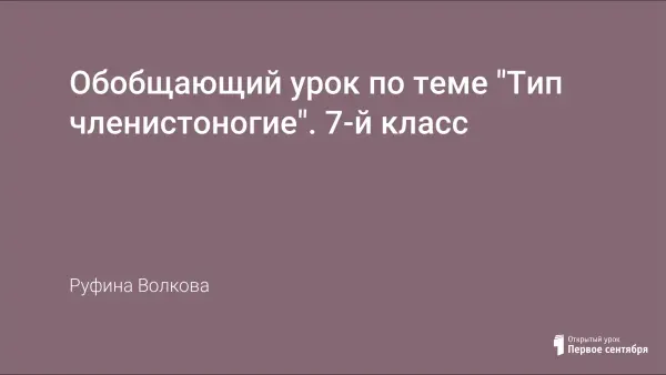 Обобщающий урок систематизирует, обобщает знания по теме. Интегрируется с другими общеобразовательными предметами: литературой, физикой, изобразительным искусством, музыкой. Обобщаются знания о многообразии представителей типа членистоногие, основных особенностях классов ракообразные, паукообразные, насекомые, значении животных в природе и жизни человека.