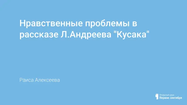 В рассказе "Кусака" героем является собака, ибо "все живое имеет одну и ту же душу, всё живое страдает одними и теми же страданиями и в великом безличии и равенстве сливается воедино перед грозными силами жизни" (Л.Андреев). Не в меньшей степени, чем социальная среда, определяет уровень духовности человека его общение с миром природы. Равнодушие, жестокость по отношению к природе – это прямой путь к бездуховности.