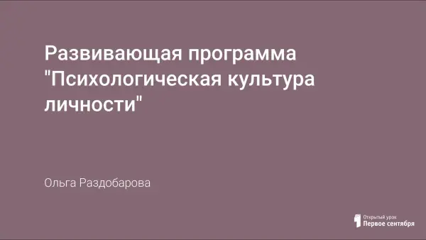 Развивающая программа "Психологическая культура личности"