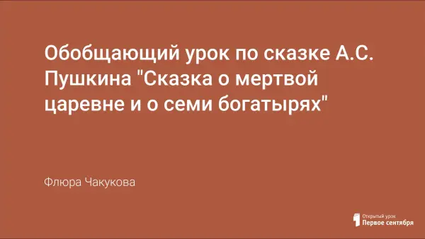 На уроке автор отрабатывает с учащимися навыки анализа текста, работу в группе, обобщение знаний учащихся по сказке А.С. Пушкина. Ученики совершенствуют навыки умения выразительно читать отрывки из сказки, развивают артистические способности.