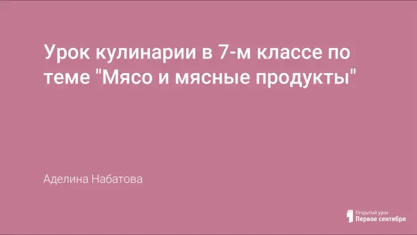 На уроке закрепляются знания учащихся о значении мяса в питании человека и способах его обработки. Развиваются навыки в приготовлении блюд из мяса.