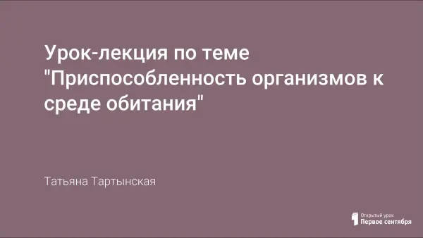 Цель урока – создание условий для эффективного усвоения знаний о приспособленности организмов к среде обитания.