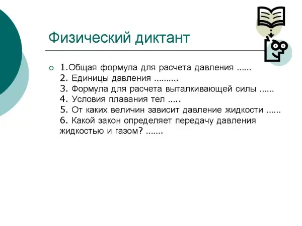 Цель урока – проконтролировать степень усвоения ЗУН, изученных на предыдущих уроках. У учащихся формируются навыки самоконтроля, использования физических приборов для измерения давления, перевода величин в систему СИ.