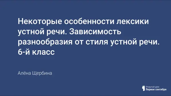 Цели урока: знать лексические особенности устной речи; развивать мышление, речь, память; воспитывать трудолюбие, доброту, внимательность.