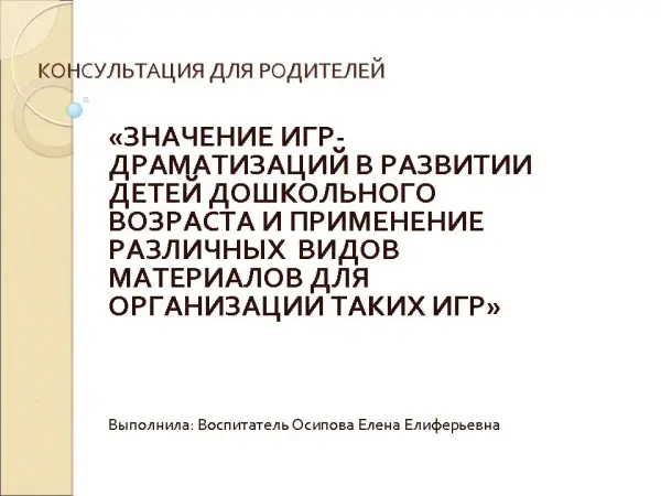 Игры-драматизации, которых ребенок разыгрывает знакомый сюжет или придумывает новый. Во время таких игр интенсивно развивается речь, обогащается словарный запас, развиваются воображение, творческие способности ребенка, удерживать внимание, логичность и самостоятельность мышления. Все это очень важно для познавательного и эмоционального развития.