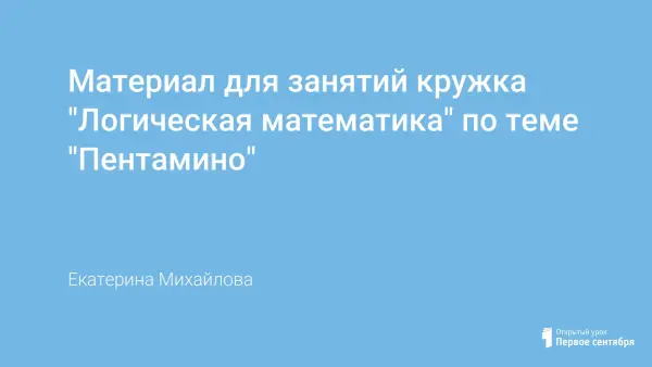 В работе предлагаеТся несколько заданий с фигурами пентамино, которые можно использовать для самых первых занятий с этой головоломкой и для более подготовленных ребят. Они подойдут и для начальной школы, и для учащихся 5–7 классов (в зависимости от уровня обучающихся). Материал может быть использован на уроках математики, для внеклассной работы по предмету.