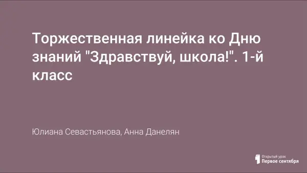 Торжественная линейка «Здравствуй, школа!» проводится для обучающихся 1-х классов и посвящена Дню Знаний, способствует созданию положительной эмоциональной атмосферы в начале учебного года, содействует творческому включению первоклассников в учебно-воспитательный процесс, воспитывает уважительное отношение и любовь к школе, учителям и сверстникам.