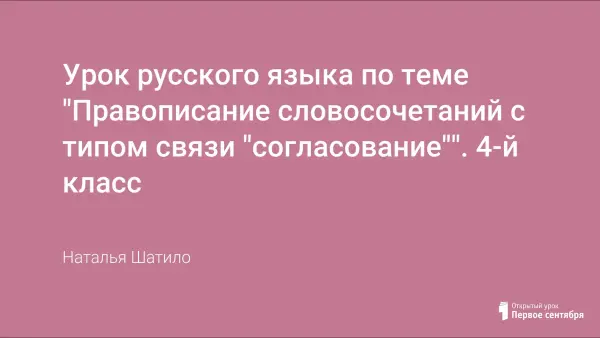 Отрабатывается навык правописания словосочетаний с типом связи "согласование"; повторяются изменения по родам несклоняемых существительных; вспоминается склонение порядковых числительных; развивается орфографическая зоркость, память, речь, внимание; умение работать в группах.