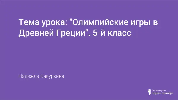 В ходе урока дается представление о первых олимпийских играх, традициях.