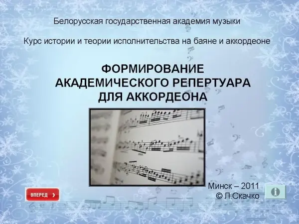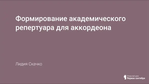 Цель лекции – познакомить студентов музыкального вуза с особенностями становления и тенденциями академизации оригинальной литературы для аккордеона.