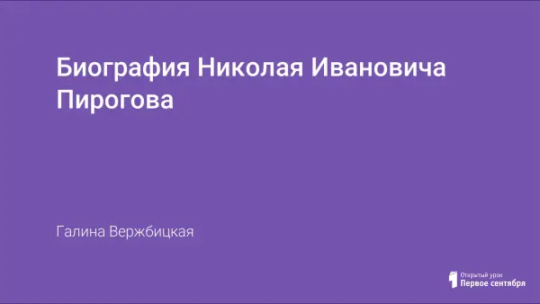 Цель урока – познакомить учащихся с биографией Н.И. Пирогова, развить познавательный интерес, кругозор, чувство гордости за заслуги выдающихся людей России, за свое Отечество.
