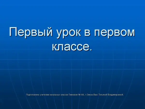 Первый урок открывает первокласснику дверь в удивительный мир знаний, помогает ощутить себя членом классного коллектива, своего города и большой страны, знакомит с ее символикой, помогает осознать свою роль в создании комфортных условий жизни, учит правилам безопасности. В ходе урока ребята знакомятся с героями интриги программы «Перспективная начальная школа». Маша и Миша дарят детям «Азбуку», помогают вспомнить правила общения с книгой.