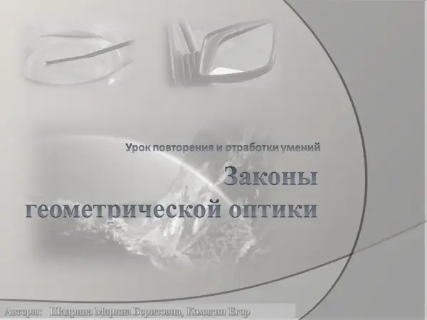 На уроке учащимся преlлагаются различные задания на повторение и закрепление знаний законов геометрической оптики, a также применение этих знаний для решения качественных и расчетных задач. На уроке разбираются три расчетные задачи разной степени сложности. Если какой-то уровень слишком сложен для самостоятельного решения, то обсуждение в группе и образец решения задачи поможет любому ученику разобраться в логике решения.