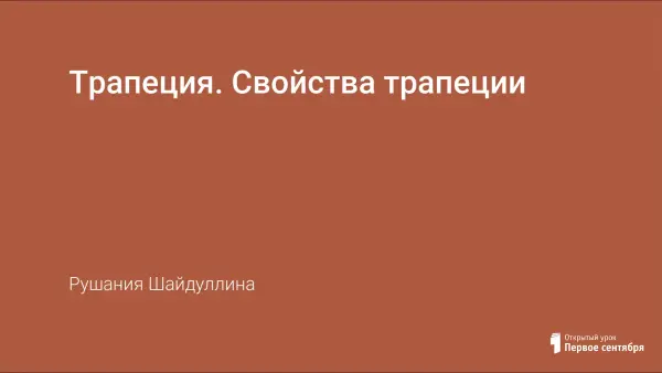 Урок занимает важное место в теме «Четырехугольники». В ходе урока связываются ранее усвоенные знания о треугольниках, четырехугольниках и их свойствах. В процессе изучения материала учащиеся получают полное представление о новом виде четырехугольников – трапеции, узнают ее виды, свойства, применяют их при решении задач. Использована групповая и самостоятельная работа.