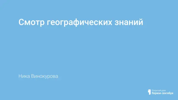 Урок спроецирован в форме «смотр географических знаний». Он предназначен для показа знаний учащихся их родителям: что освоили, чего добились их дети на уроках географии. В урок включены разнообразные формы проверки знаний учащихся. Здесь есть задания творческого уровня, на логическое мышление, на знание карты и конкретных определений.