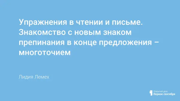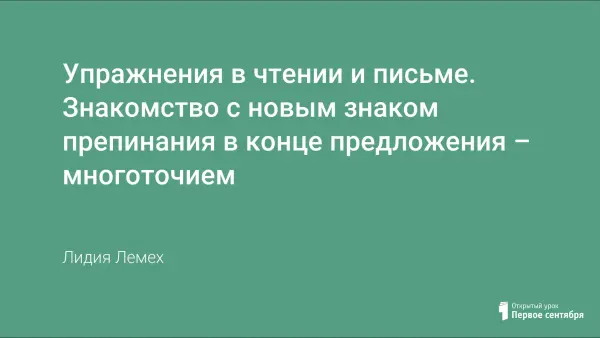 Цель урока: тренироваться в чтении и письме слов, предложений с изученными буквами; познакомиться с новым знаком препинания в конце предложения – многоточием.