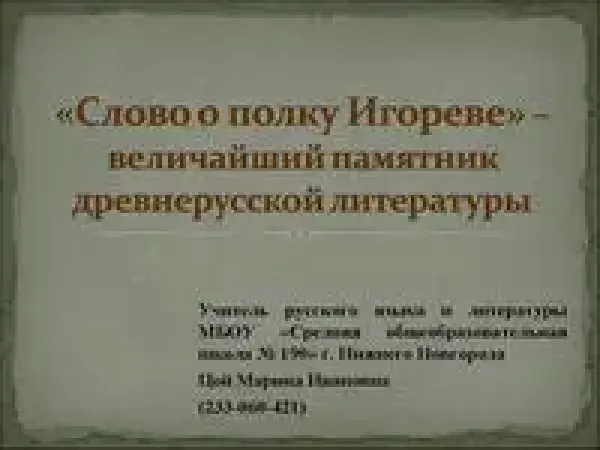 На 1-м уроке учащиеся знакомятся с жанрами древнерусской литературы, историей открытия, изучения и происхождения "Слова...", узнают об исторической основе памятника и оценке исторических событий современниками, а также авторстве "Слова о полку Игореве". На 2-м уроке рассматриваются сюжет и специфика образов "Слова...". Художественные особенности "Слова о полку Игореве": жанр, самобытность языка, образ автора, русской земли ‒ тема 3-го урока. Значению "Слова о полку Игореве" посвящен