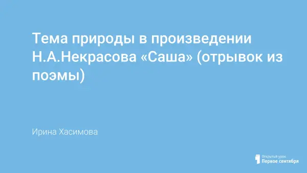 Представлена презентация по теме "Тема природы в произведении Н.А.Некрасова «Саша» (отрывок из поэмы)".