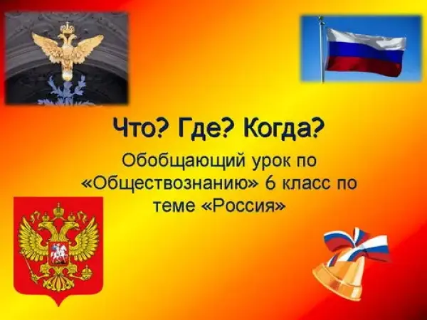 Представлена разработка урока-игры по обществознанию для учащихся 6-го класса. В ходе учебного занятия в игровой форме с использованием ИКТ (игра "Что? Где? Когда?") осуществляется повторение и обобщение изученного материала по теме "Родина", формируются умения работы учащихся в группе. При подготовке урока используются вопросы, сформулированные шестиклассниками.